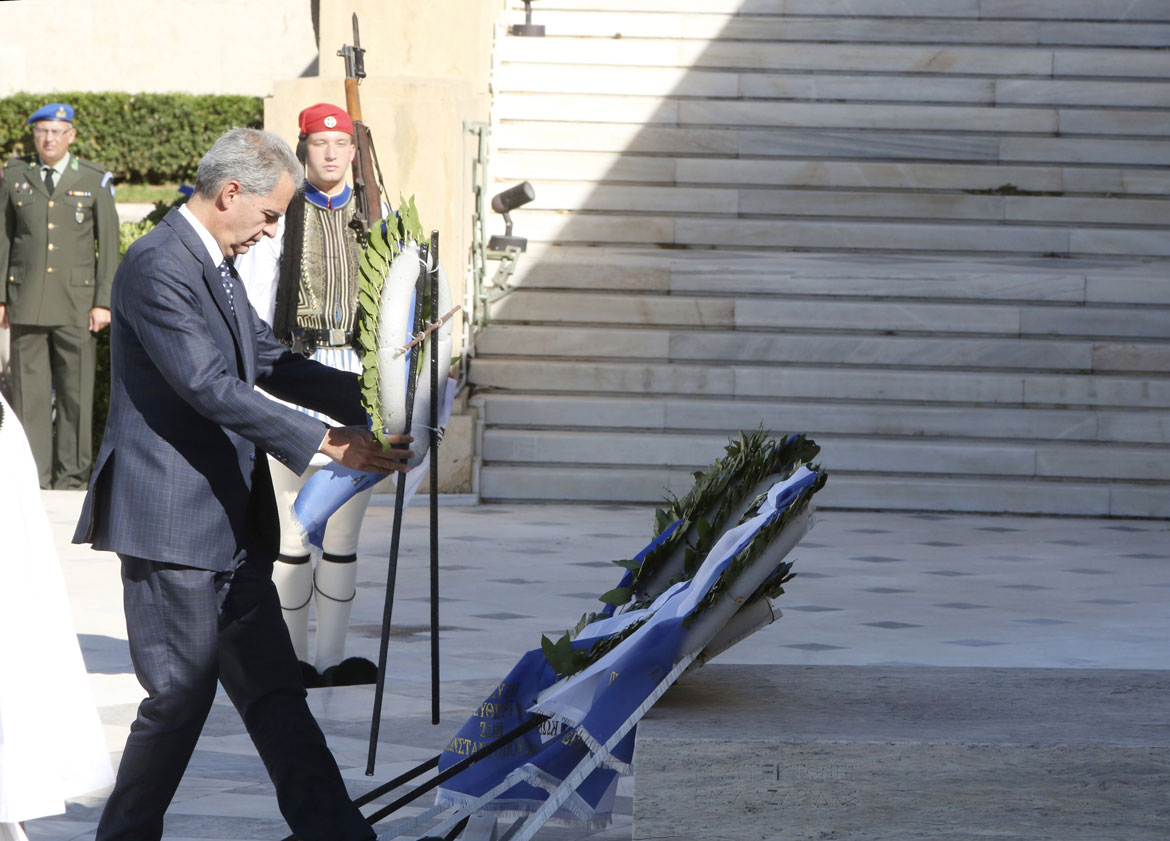 Πλήθος κόσμου κατέκλυσε το Σύνταγμα για να παρακολουθήσει την παρέλαση και να αποδώσει φόρο τιμής στους αγώνες των Ελλήνων για την ελευθερία. Ακολούθησε η κατάθεση στεφάνων στο Μνημείο του Αγνώστου Στρατιώτη.