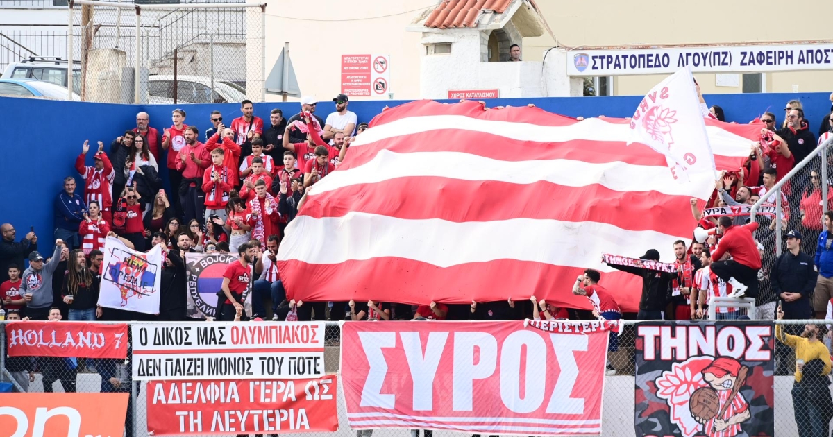 Ο αγώνας του Ολυμπιακού με την Ελλάς Σύρου αποτελεί ένα σπάνιο και αξιοσημείωτο γεγονός για την πρωτεύουσα των Κυκλάδων. Ωστόσο, αυτό που είδαμε λίγα λεπτά πριν από την έναρξη του παιχνιδιού στις τηλεοράσεις μας ήταν ακόμη πιο εντυπωσιακό.