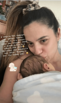 «Η αϋπνία δεν υπάρχει, οι μαύροι κύκλοι είναι οι πιο μαύροι όλων των εποχών, αλλά η αγκαλιά μου πιο γεμάτη από ποτέ… Μανούλες που θηλάζετε, πώς πάτε; Κουράγιο και την αγάπη μας», αναφέρει η ίδια στη λεζάντα της εικόνας.