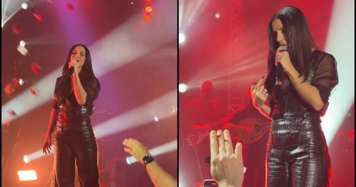 Η απογοητευμένη τραγουδίστρια δεν άφησε την κατάσταση να περάσει απαρατήρητη. Με ένα βλέμμα που τα έλεγε όλα, πλησίασε τον συγκεκριμένο θαμώνα, και σε ένα βίντεο που κυκλοφόρησε στα social media, την ακούσαμε να ρωτά: «Να σου πω, εσύ. Πετάς λουλούδια με νερό στο πρόσωπό μου;» πριν απομακρυνθεί, δείχνοντας τη δυσαρέσκειά της. Και δεν σταμάτησε εκεί! Γυρίζοντας στους μουσικούς της, ξεστόμισε: «τι μ@λ@κ@ς!», συνοδεύοντας την ατάκα της με μια χαρακτηριστική κίνηση. Ο κόσμος βέβαια, απολάμβανε το θέαμα!