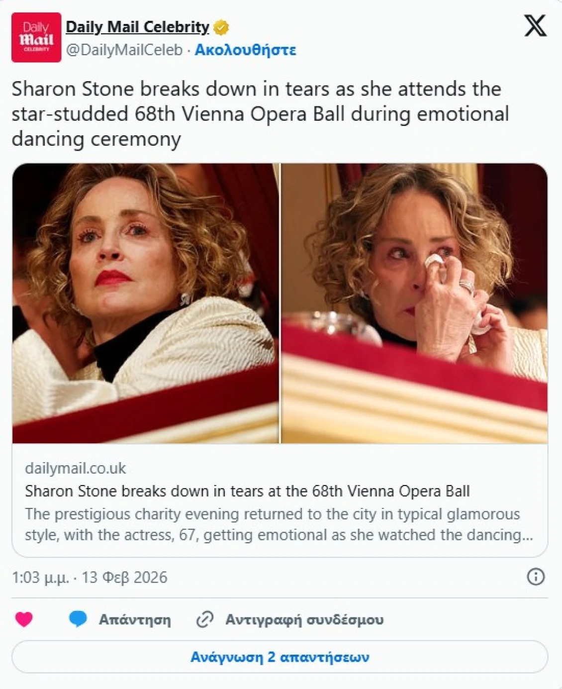 Η εμφάνιση της Sharon Stone κατά τη διάρκεια του 68ου Χορού της Όπερας στη Βιέννη το βράδυ της 12ης Φεβρουαρίου 2026, σηματοδότησε ένα από τα πιο αισθαντικά και συζητημένα γεγονότα της βραδιάς.