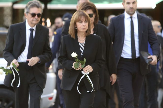 Στη Μητρόπολη συγκεντρώθηκε ολόκληρος ο καλλιτεχνικός και πολιτικός κόσμος για να αποχαιρετήσει τον σπουδαίο αυτό άνθρωπο. Μεταξύ τους και η πρώην Πρόεδρος της Δημοκρατίας, Κατερίνα Σακελλαροπούλου, η οποία συνδέθηκε φιλικά με τον Διονύση Σαββόπουλο.