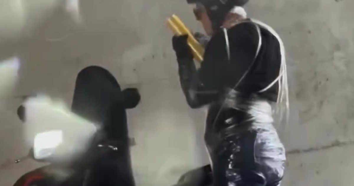 Ένα βίντεο που δημοσιεύτηκε στον δημοφιλή «Τσίλι Καφενείο» (συγχωρέστε μας οι εραστές του καφέ) απεικονίζει έναν οδηγό μηχανής να έχει σταματήσει κάτω από μια γέφυρα, ενώ η βροχή πέφτει ακατάπαυστα. Ξεκάθαρα κουρασμένος από τις συνθήκες, αποφάσισε να δράσει: τυλίχθηκε με μεμβράνη τροφίμων από την κορυφή ως τα νύχια, περιλαμβάνοντας κράνος, σώμα και μπότες – τα πάντα!