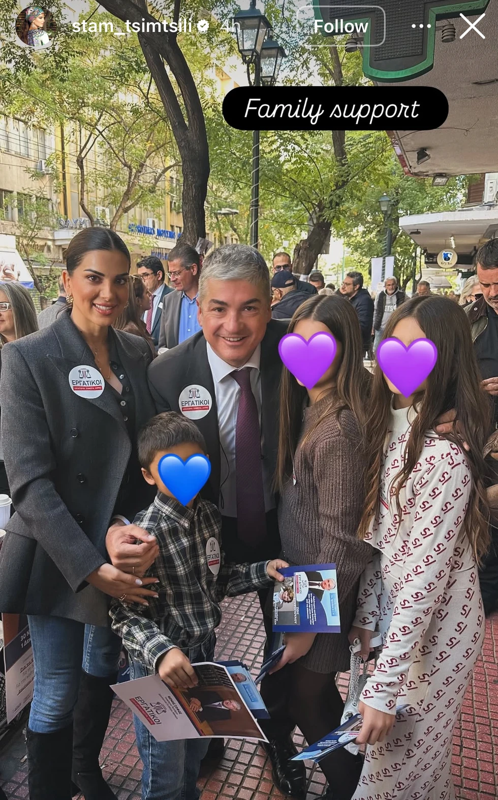 «Αν και δεν ψηφίζουμε στις εκλογές του Δικηγορικού Συλλόγου Αθηνών, βρεθήκαμε με χαρά στο πλευρό του μπαμπά μας οικογενειακώς» ήταν τα λόγια της Σταματίνας Τσιμτσιλή στη λεζάντα της ανάρτησής της.