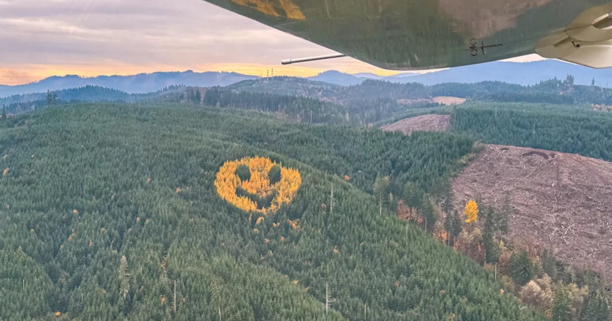 Καθώς ταξιδεύετε κατά μήκος του αυτοκινητοδρόμου 18 στο Όρεγκον, θα συναντήσετε ένα μοναδικό και εντυπωσιακό χρωματιστό στοιχείο στο δάσος, που δείχνει ένα ευχάριστο χαμόγελο, αποτέλεσμα μιας καινοτόμου αναδάσωσης που συνδυάζει φυσικά στοιχεία με emoji.
