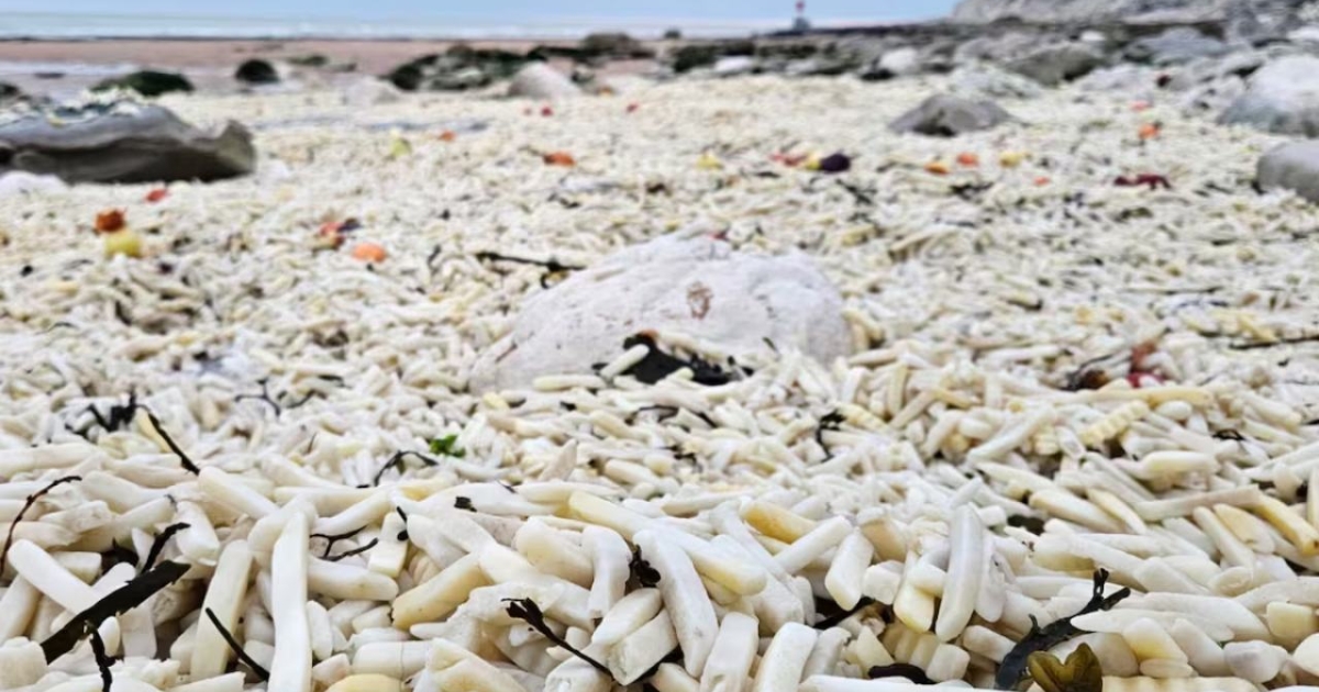 Παραλία στην Αγγλία καλύφθηκε από πατάτες τηγανιτές και κρεμμύδια: «Έμοιαζε με κίτρινη άμμο» (βίντεο)