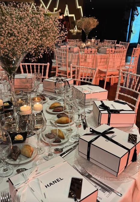 Ανάμεσα στα χαρακτηριστικά στοιχεία του γάμου, η μπομπονέρα έκλεψε τις εντυπώσεις: ένα κομψό κουτί Chanel, γεμάτο με ένα άρωμα, ένα ματάκι και φυσικά, τα απαραίτητα κουφέτα!